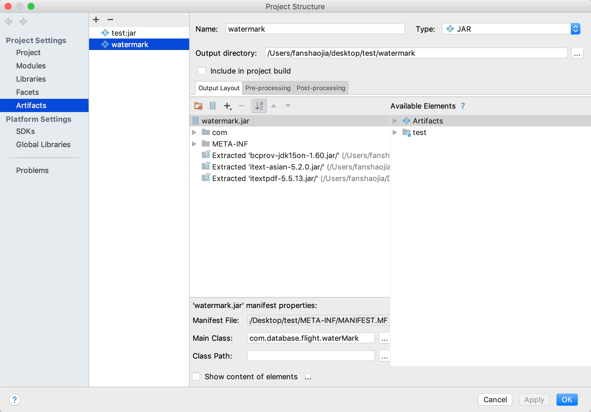 Main-class:com.database.flight.waterMark。(也可以在创建文件的时候,在Main Class选项里选择主类。