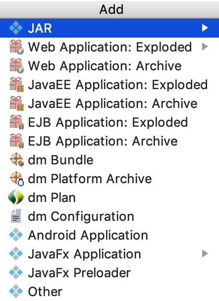 - 点击“+”按钮,选择jar,选择empty